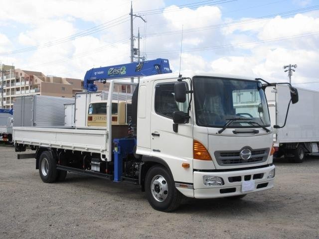 平成27年式!日野レンジャークレーン付4段フックイン・ラジコン★標準★木平ボディ★短期リース可 ★ブーム格納忘れ防止警報装置付き!