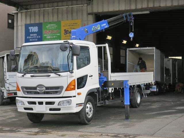 平成28年式 日野レンジャー クレーン付木平ボディ 4段フックイン・ラジコン 標準幅