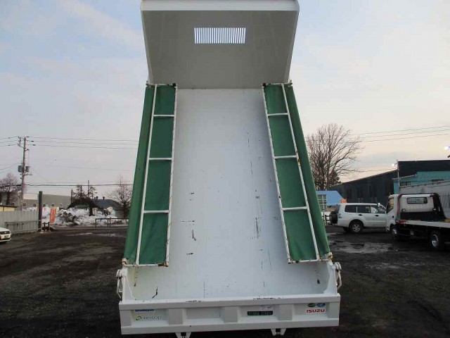 レンタルアップしました!平成29年式 いすゞフォワード 中型ダンプ 新明和製 強化角底1方開 手動コボレーン ディーラー点検記録簿付