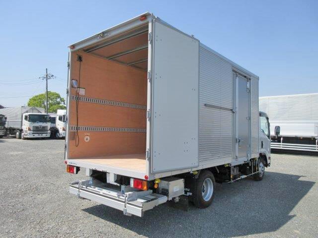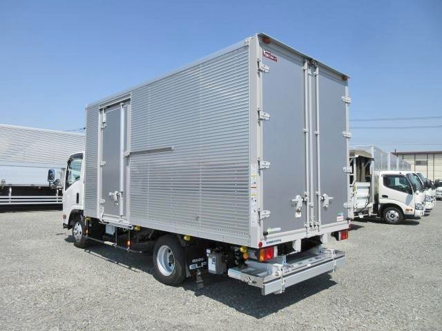 平成29年式 いすゞエルフ 小型アルミバン 高床 ワイドロング 格納PG付 両サイド扉付