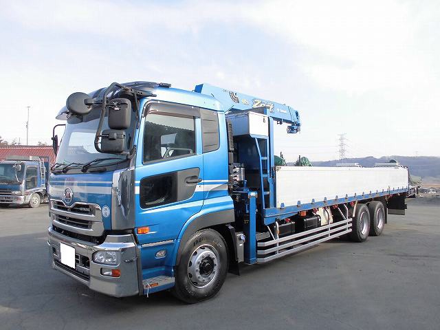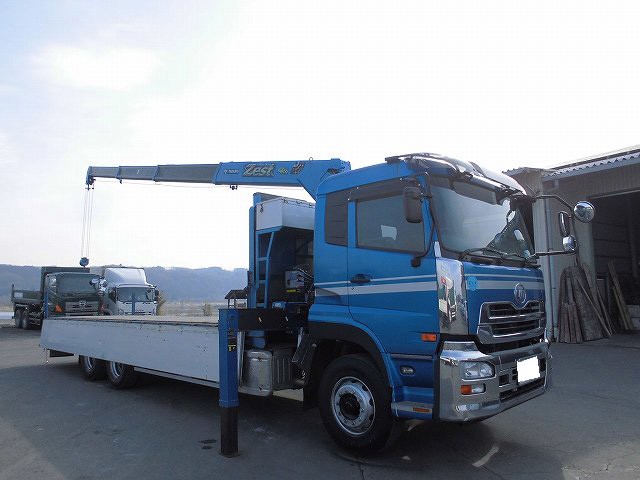 平成23年式 日産UDクオン 大型クレーン付アルミブロック 3方開 タダノ4段ブーム 2デフ フックイン・ラジコン・ETC付