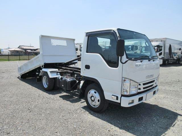 平成29年式 いすゞエルフ 小型ローダーダンプ 全低床 積載3t 新明和製 角底3方開 【土砂・建機運搬も可能】