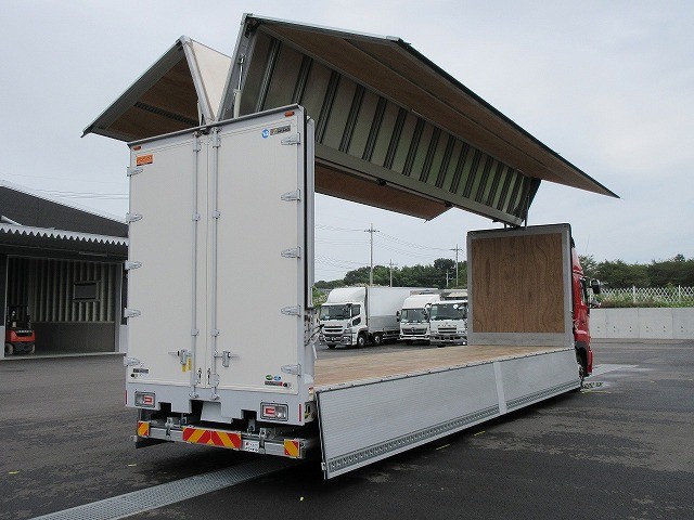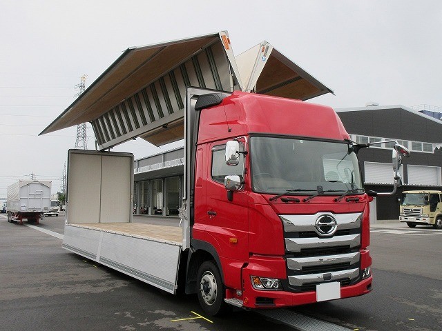 リースアップしました!平成30年式 日野新型プロフィア 4軸低床 大型アルミウィング 格納PG付(R1年式:新品装着!) ハイルーフ 後輪エアサス リターダ ディーラー点検記録簿付