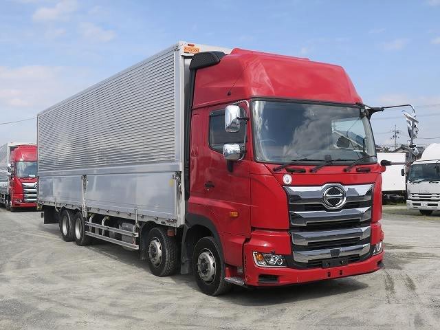 リースアップしました!平成30年式 日野プロフィア 大型アルミウィング 4軸低床 寒冷地仕様/ヒーターミラー ハイルーフ メッキ付 後輪エアサス ディーラー点検記録簿付