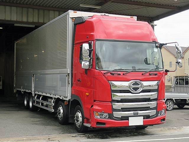 リースアップしました!平成30年式 日野プロフィア 大型アルミウィング 4軸低床 寒冷地仕様/ヒーターミラー ハイルーフ メッキ付 後輪エアサス ディーラー点検記録簿付