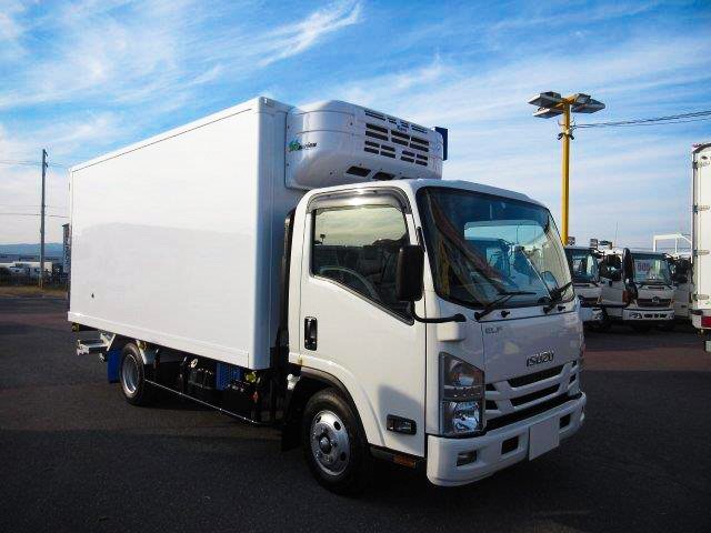 平成29年式 いすゞエルフ 小型冷凍バン格納PG付き 積載2t 高床ワイドロング 東プレ製-30度設定・サイド扉・スタンバイ付・保冷カーテン