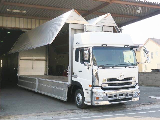 平成23年式 UDトラックス クオン 大型アルミウィング コンビゲート付 4軸低床 ハイルーフ 後輪エアサス ラッシングレール3段 エスコット