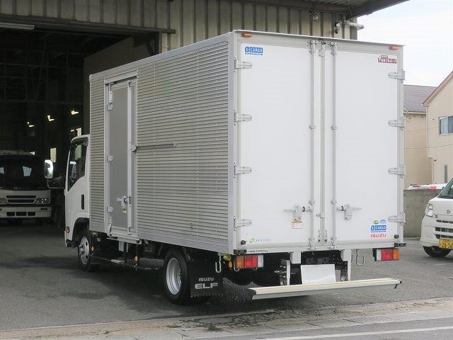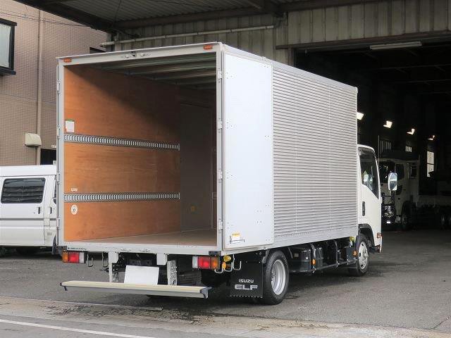 リースアップしました!平成31年式 いすゞエルフ 2tアルミバン 全低床 ワイドロング 左サイド扉 準中型免許対応! ディーラー点検記録簿付