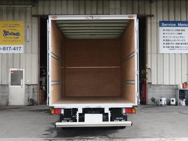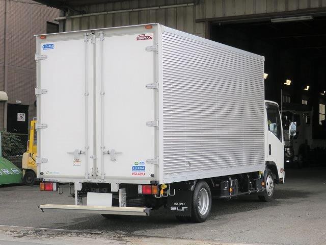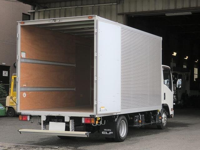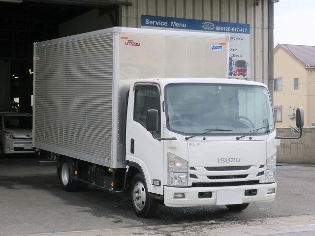 リースアップしました!平成31年式 いすゞエルフ 2tアルミバン 全低床 ワイドロング 左サイド扉 準中型免許対応! ディーラー点検記録簿付