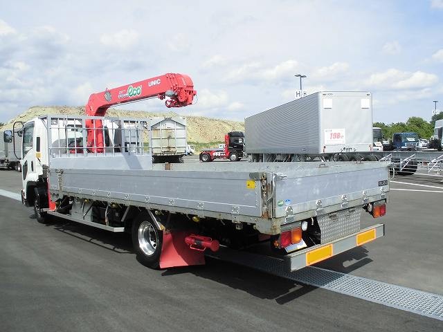 平成21年式 いすゞフォワード 中型平ボディ クレーン付平ボディ ワイド 古河ユニック4段ブーム フックイン・ラジコン付 リヤアウトリガー付