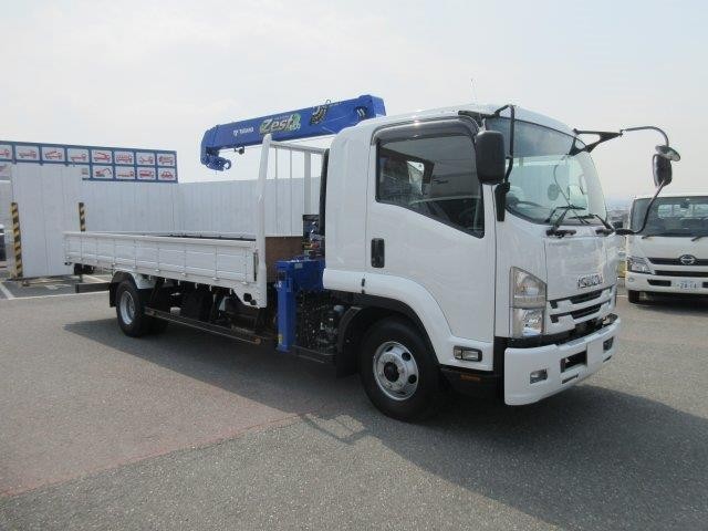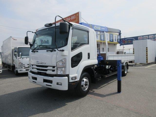 【リースdeスグのり専用】平成31年式 いすゞ新型フォワード 中型クレーン付平ボディ 標準ボディ タダノ4段 フックイン・ラジコン付 PCS装置付き