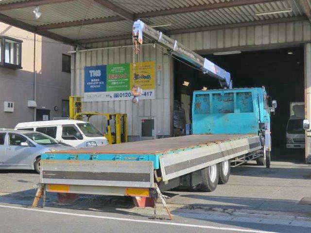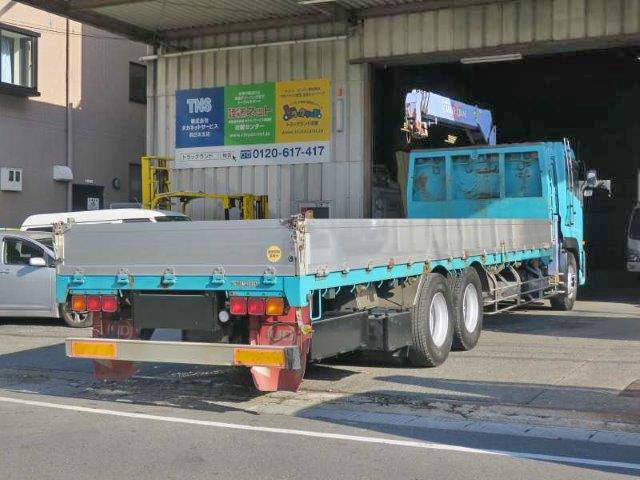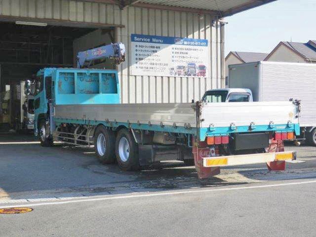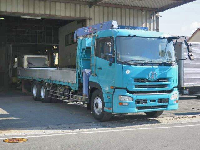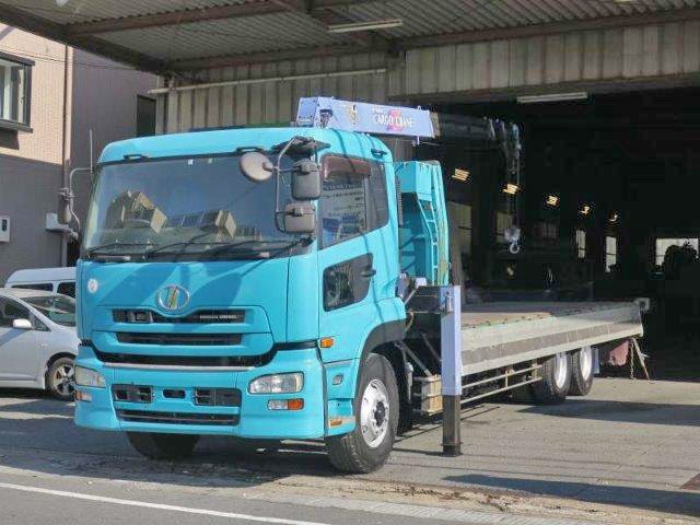 平成18年式 日産UDクオン 後2軸高床 大型クレーン付平ボディアルミブロック 3方開 タダノ4段ブーム 2.93t吊 フックイン ラジコン付