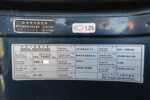 平成23年式 UDトラックス コンドル 増トン平ボディアルミブロック 3方開 6200ワイド 後輪エアサス メーター実走行約74.2万km