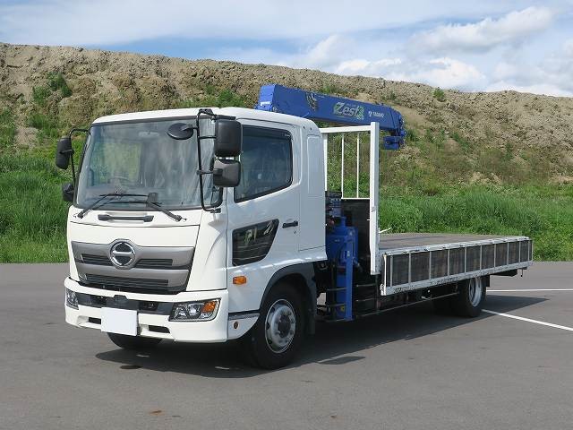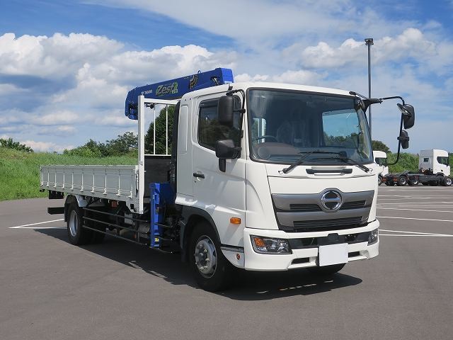 リースアップしました!平成31年式 日野レンジャー 増トン クレーン付平ボディ タダノ4段ブーム 内寸5500㎜ 240馬力 2.93t吊 フックイン・ラジコン付 ディーラー点検記録簿付
