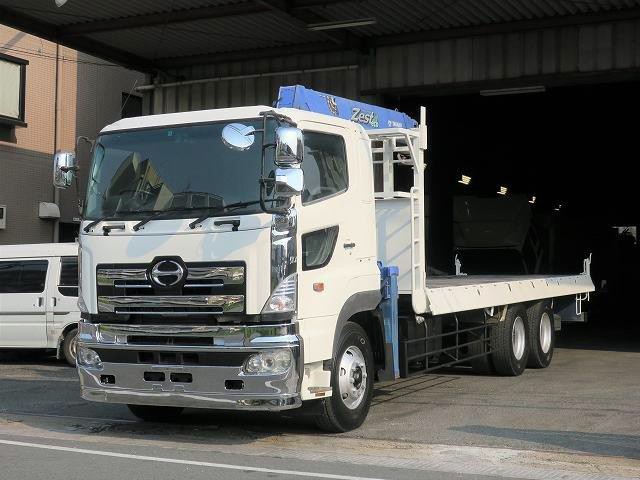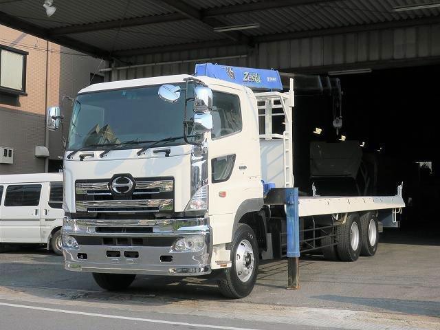 平成16年式 日野プロフィア 大型クレーン付平ボディ 高床後2軸 タダノ4段ブーム 3方開 2.93t吊 フックイン・ラジコン付★メーター実走行約39.9万km★