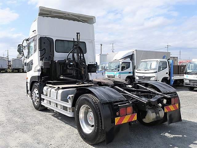 平成27年式 UDトラックス クオン トラクタヘッド 第五輪荷重11.3t 一括緩和 リターダ 410馬力 ハイルーフ PTO&油圧ポンプ付 コボレーン用スイッチ付ダンプレバー付 アルミホイール装着