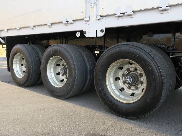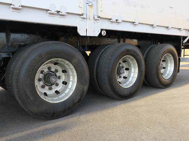 平成17年式 日本フルハーフ 3軸アルミブロック平トレーラー 7方開 最大積載27.1t アルミホイール装着