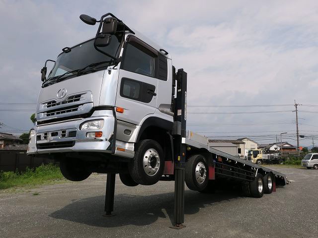 平成20年式 UDトラックス クオン 大型セルフローダー 4軸低床 タダノ製 ハイジャッキ 410馬力 自動歩み板 ウィンチ ラジコン リターダ アルミホイール装着
