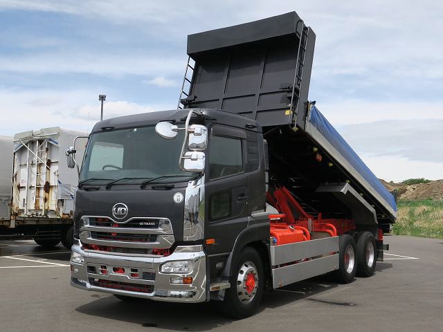 平成26年式 UDトラックス 22トンロングダンプ 2デフ 電動コボレーン リターダ アルミホイール ★メーター実走行約60.2万㎞/予備検査付★
