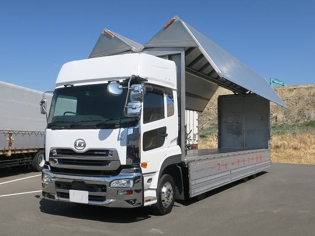 平成27年式 UDトラックス クオン 大型アルミウィング 4軸低床 総輪エアサス ハイルーフ リターダ アルミホイール ★メーター実走行約44万㎞/R5年10月迄車検付★【融雪剤対策仕様車】