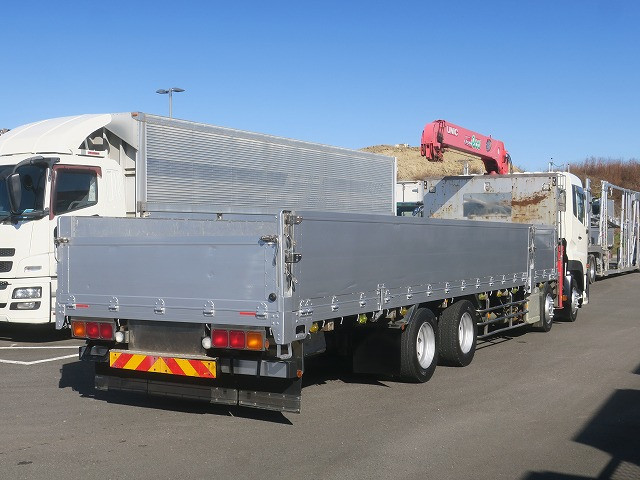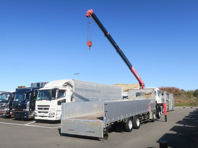 平成27年式 UDトラックス クオン 大型クレーン付平ボディ アルミブロック 5方開 4軸低床 ユニック4段 ラジコン フックイン 後輪エアサス