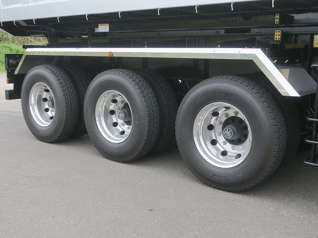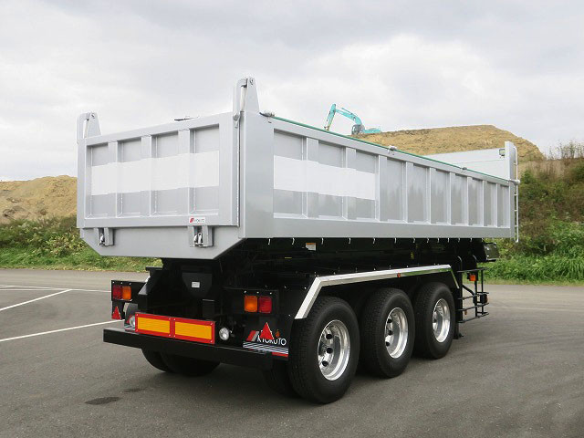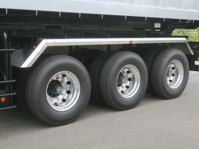 【未使用未登録車】日本トレクス 3軸ダンプトレーラー 土砂仕様 積載25.9t・16立米 ベッセル内張スウェーデン鋼 アルミホイール