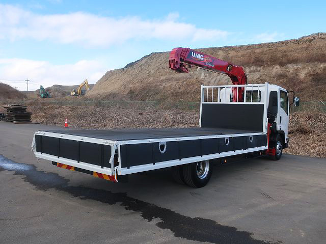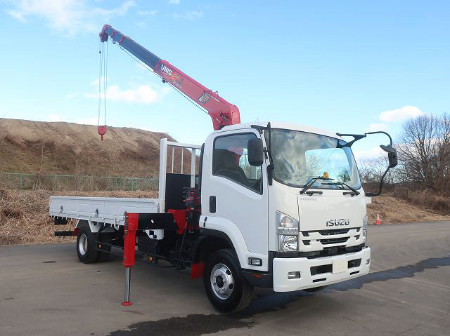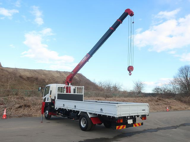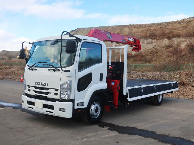 【リースレンタル専用車両】令和1年式 いすゞ フォワード 中型クレーン付平ボディ 5400標準 ユニック4段 ラジコン フックイン ★楽のりパック施工済み!★