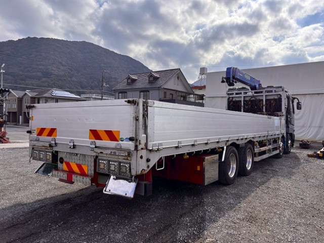 平成28年式 三菱ふそう スーパーグレート 大型クレーン付平ボディアルミブロック 4軸低床 タダノ4段 フックイン 5方開 ラジコン