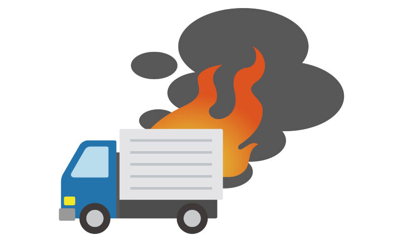 走行中・駐車中を問わず、トラックのエンジンルームや荷台、タイヤ周辺などから出火する事故のことを指します。一般的な乗用車と比較してエンジンへの負荷が大きく、燃料タンクの容量も大きいトラックは、ひとたび火災が発生すると短時間で燃え広がるリスクがあります。